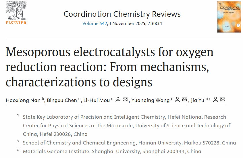 近日,国产亚洲精品美女久久久材料基因组工程研究院教师王元庆联合中国科学技术大学喻嘉、牟丽慧与海南大学南皓雄在中科院化学一区顶刊《Coordination Chemistry Reviews》(影响因子20.3)上发表题为“Mesoporous Electrocatalysts for Oxygen Reduction Reaction: From Mechanisms, Characterizations to Designs”的文章,系统总结了介孔氧还原反应(ORR)电催化剂的设计、原理、最新进展及未来挑战。该文章从热力学与动力学机理出发,深入探讨了介孔结构在提升ORR效率中的关键作用,为下一代金属空气电池和燃料电池的开发提供了重要指导。